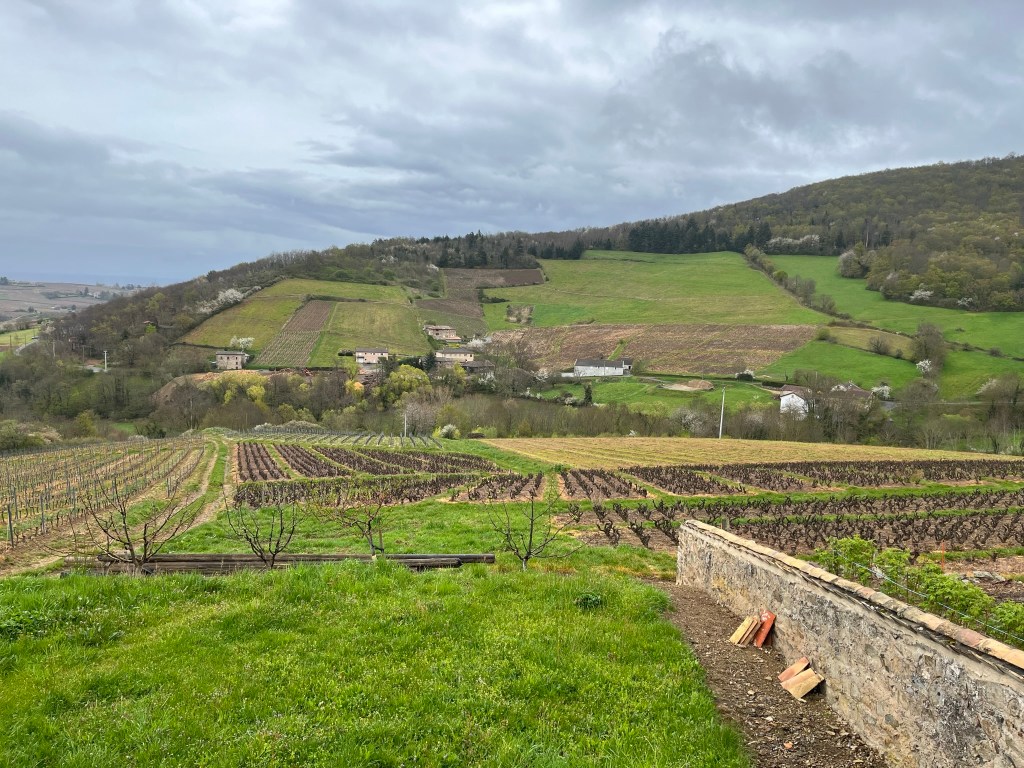 Nous sommes partis Lundi direction le Beaujolais et notre ami Didier Lagneau! La propriété est sur les hauteurs de Quincié et domine la vallée.