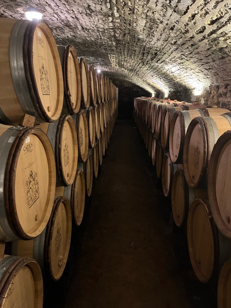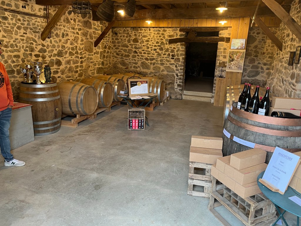 Logés et invités à diner (côte de bœuf et Alchima!) chez le vigneron, nous avons aussi rencontré toute la famille, chevaux, poules, chiens, chats et dégusté le nouveau millésime directement dans les cuves/fûts, 2022 cela promet!