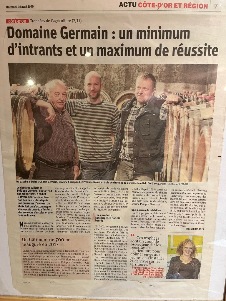 Après une soirée avec deux jolies quilles, un beau match et une bonne nuit à Beaune nous continuons notre périple avec une visite au domaine Germain puis nous avons remonté la route des vins de la Côte de Nuits, ses appellations prestigieuses, ses vignobles en clos et ses villages et châteaux.